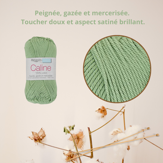 Fil à tricoter Caline - Vert clair - 100% coton - peignée, gazée et mercerisée