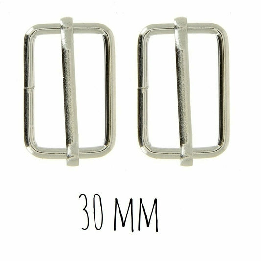 Boucles coulissantes rectangulaires - métal - 30 mm - argentées - 2 pièces -