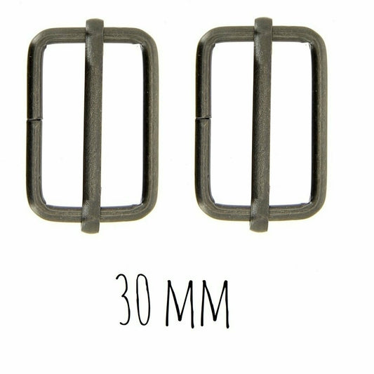 Boucles coulissantes rectangulaires - métal - 30 mm - noires - 2 pièces -