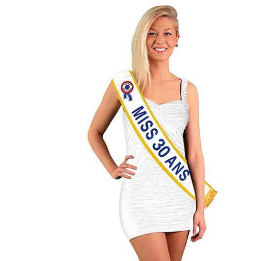 Echarpe MISS 30 ans - satinée design pailleté bordure dorée - Taille unique - Humour anniversaire gadgets