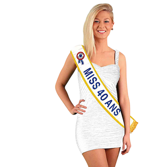 Echarpe MISS 40 ans - satinée design pailleté bordure dorée - Taille unique - Humour anniversaire gadgets