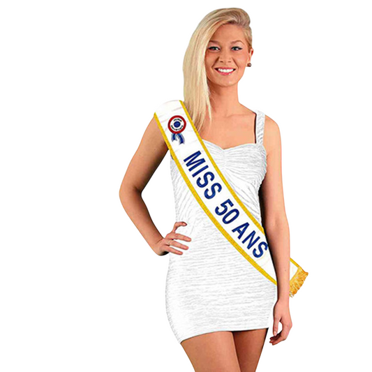 Echarpe MISS 50 ans - satinée design pailleté bordure dorée - Taille unique - Humour anniversaire gadgets