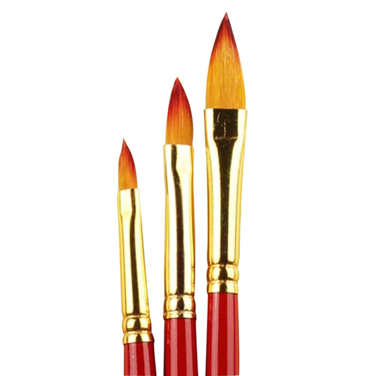 Set de 3 pinceaux d'art - rond n° 4, 8 et 12 – Fibres synthétiques – acrylique et huile