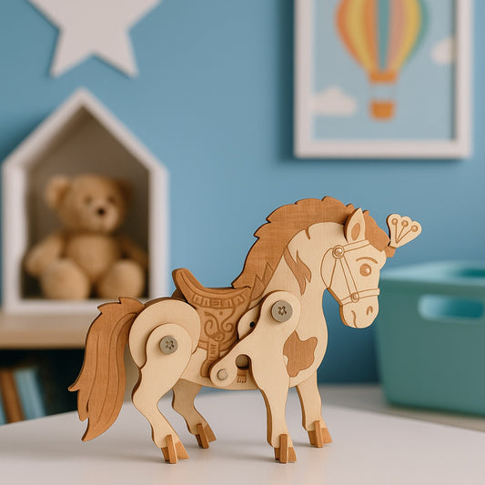 Maquette en bois 3D avec mécanisme - Cheval - 25 pièces - 14 x 9,5 x 3,5 cm