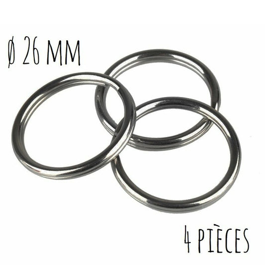 Anneaux rond nickel - ø 26 mm - argentés - 4 pièces
