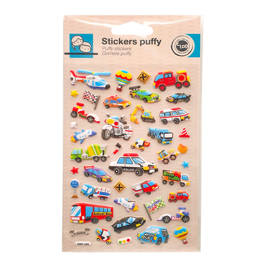 Mini stickers 3D puffy véhicules - 40 pièces - de 0,5 à 2 cm