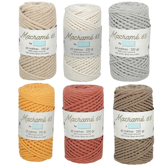 Fil macramé tressé - naturel - 3mm X 65m - 90% coton naturel recyclé