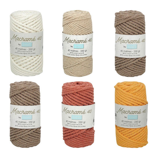 Fil macramé tressé - Naturel - 5mm X 40m - 90% coton naturel recyclé