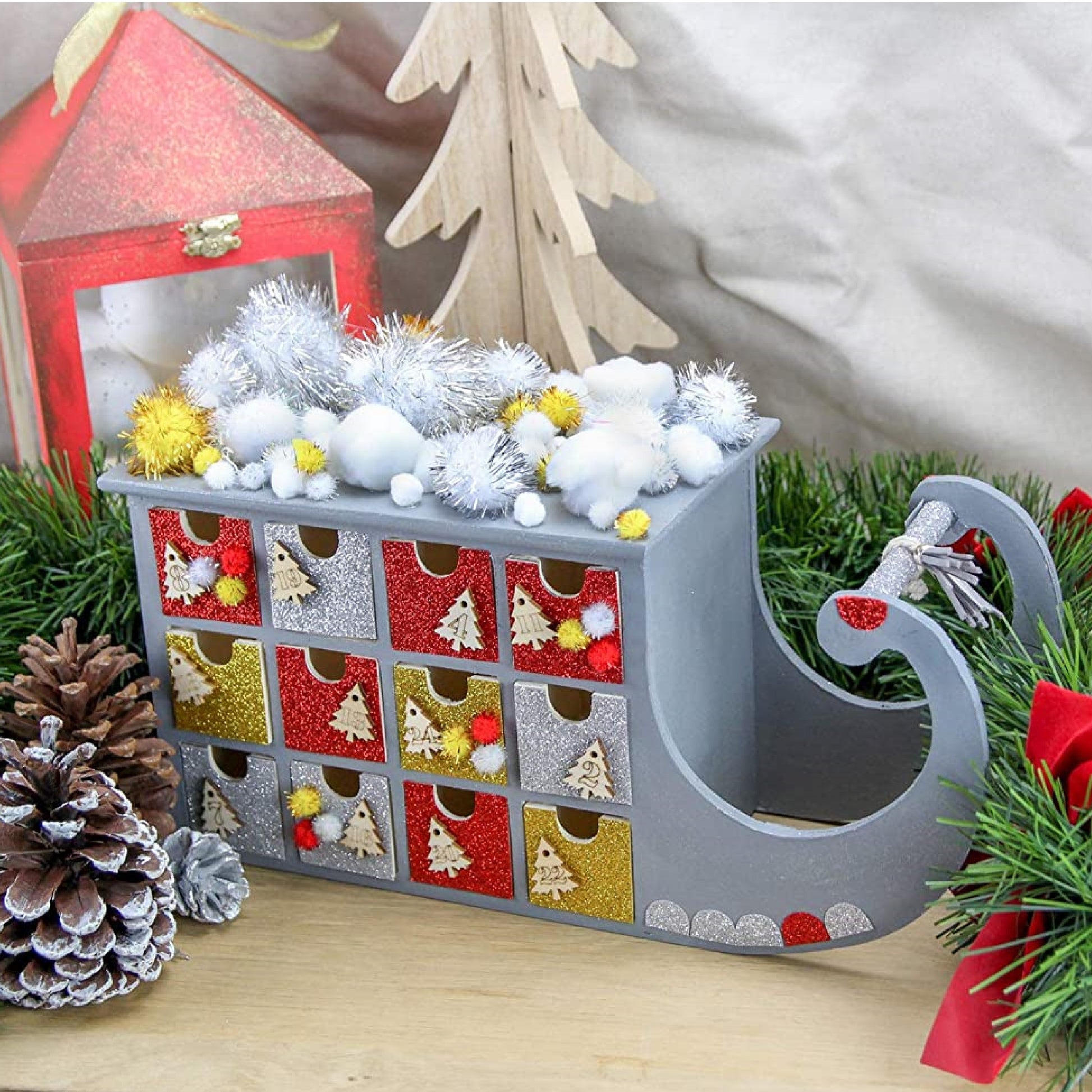 Embellissement sapins en bois 24 numéros - 28 pièces - de 2,5 cm - calendrier de l'avent