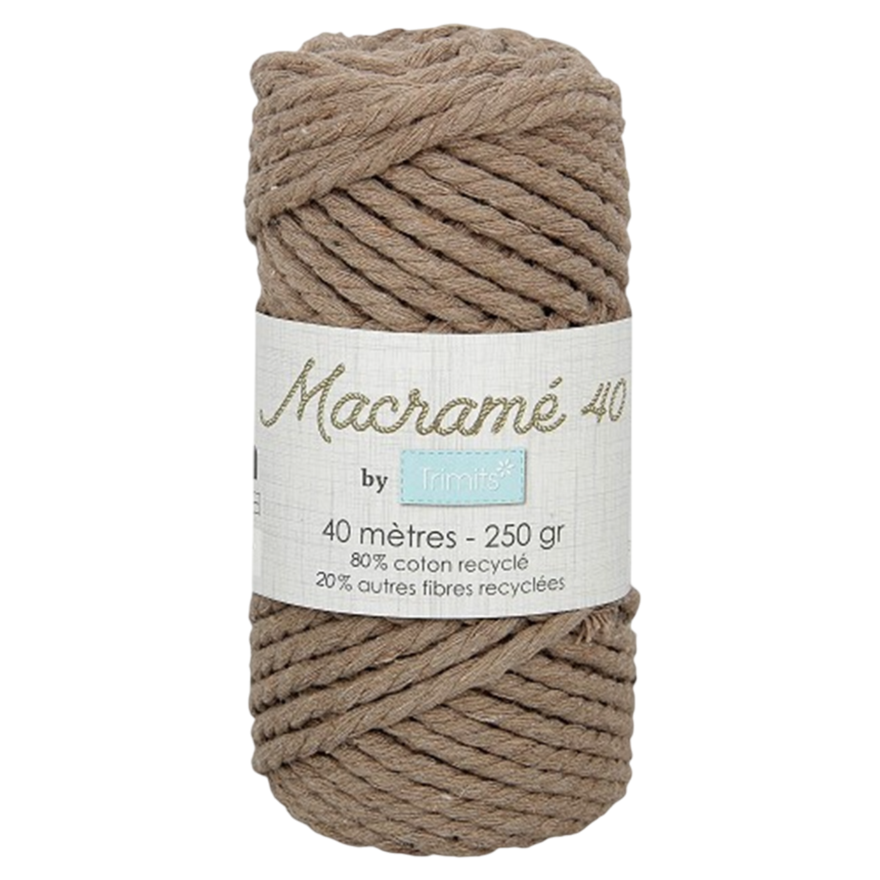 Fil macramé tressé - Taupe - 5mm X 40m - 90% coton naturel recyclé