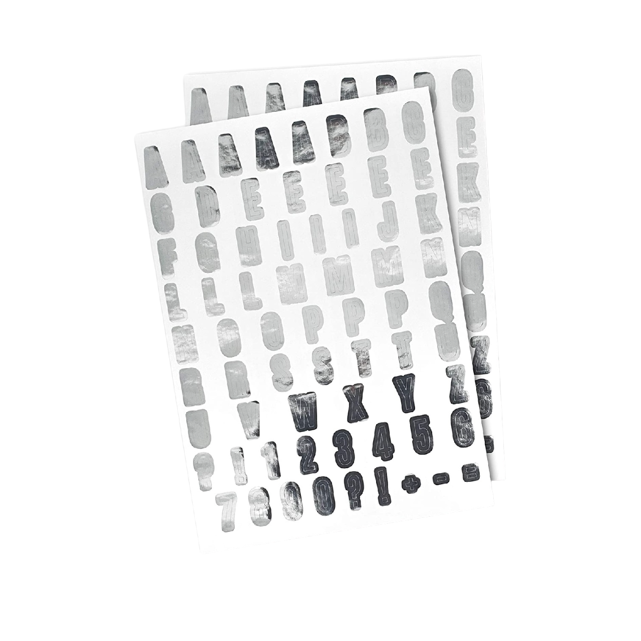 Gommettes alphabet et chiffre métallisé - argenté - 134 pièces - de 1 à 1,5 cm